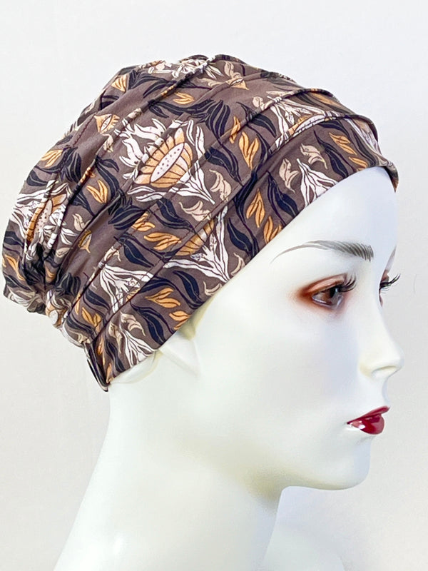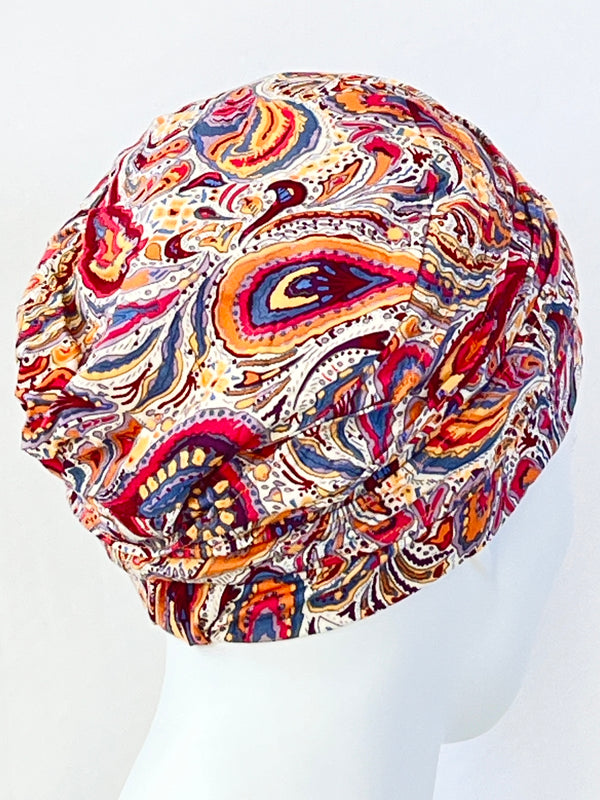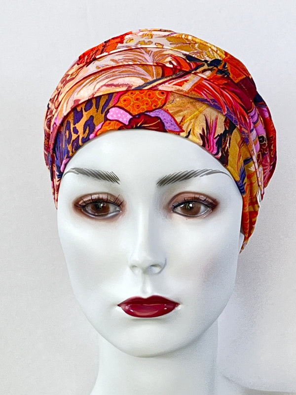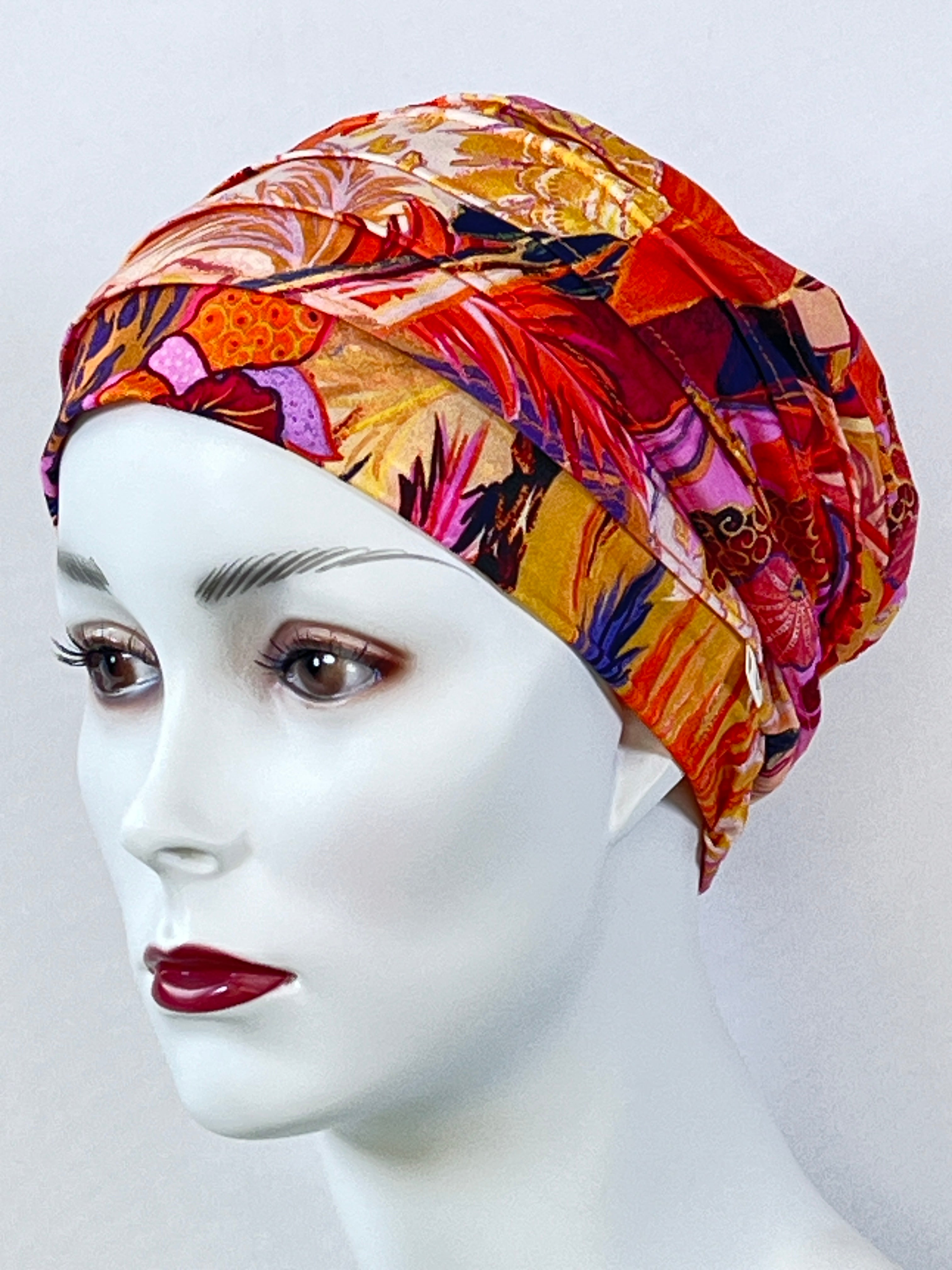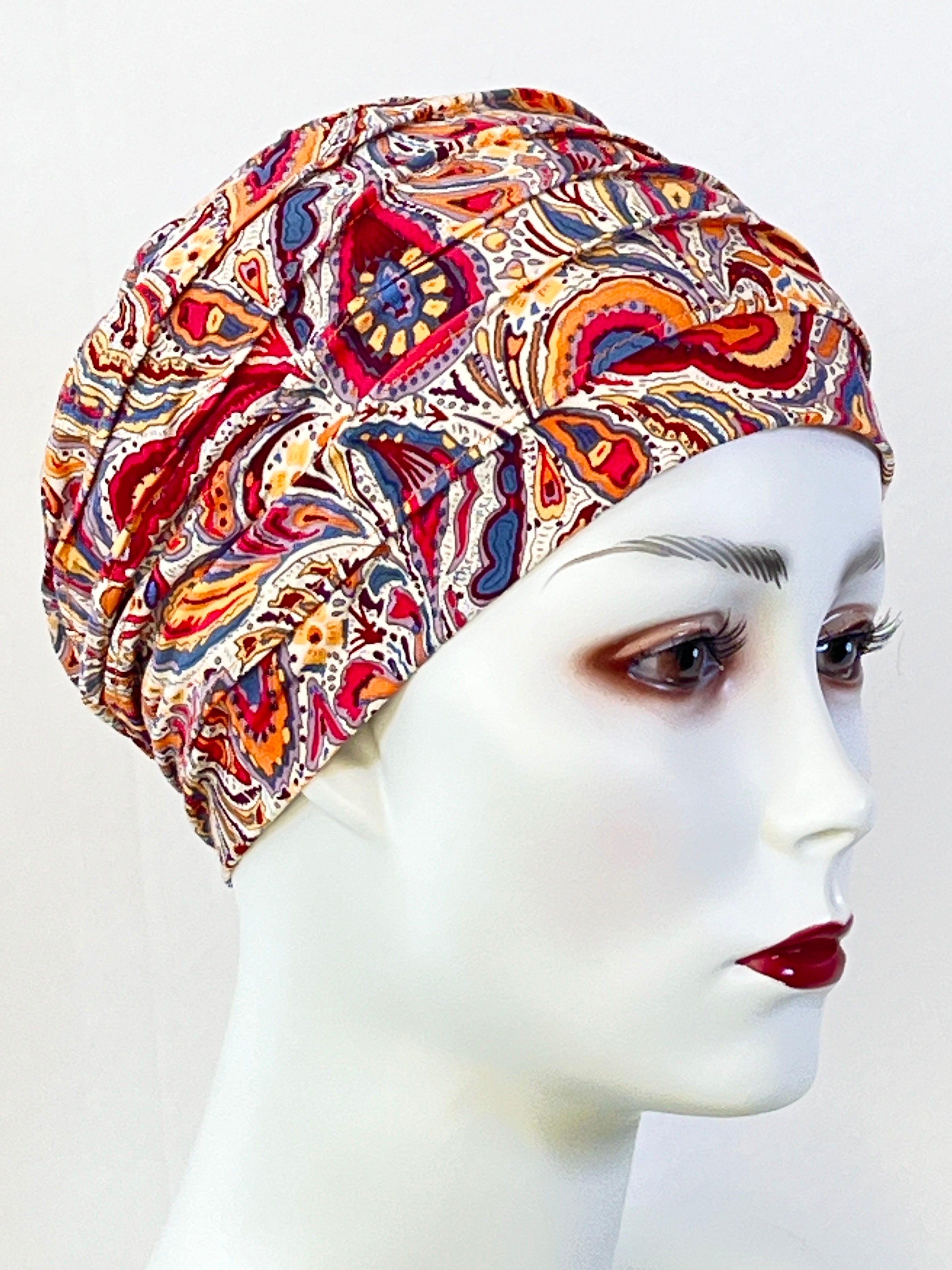 Wunderschöne Mützen auf bedruckten Stoff als Alternative zu einer Perücke. Diese farbenfrohe Kopfbedeckung kann nach ihrer Genesung auch über dem Haar getragen werden. Das Material bestehend aus Bambus / Viskose mit Elastan ist dabei ein umweltfreundliches Produkt. Durch das Caretech Qualitätssiegel wirkt das puristische Mützchen temperaturregulierend für ihre sensible Kopfhaut. Viele ausgefallene frische Farben erfüllen vielseitige Kundenwünsche.